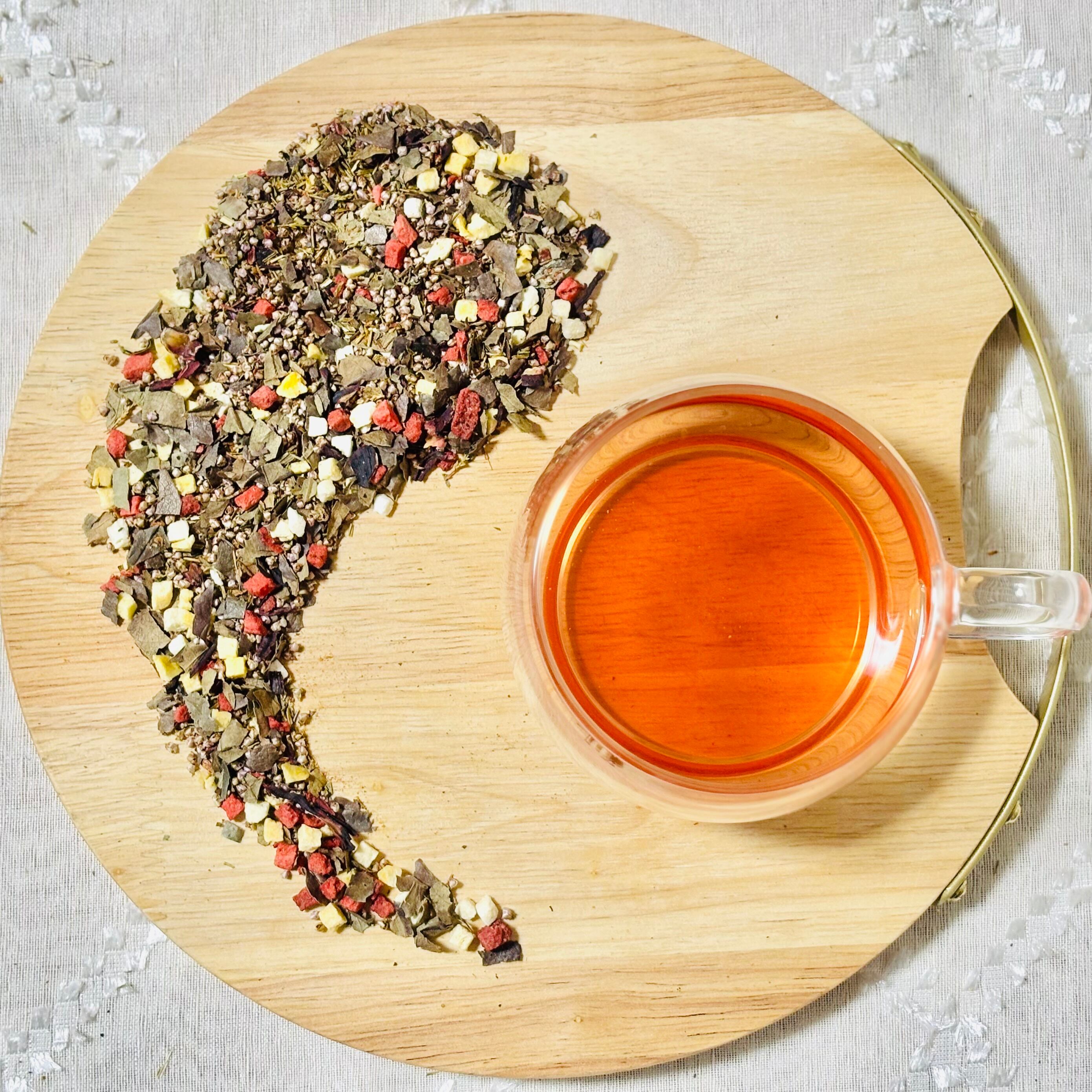 - ローズヒップ、柿の葉、ヒース、ハイビスカス、グリーンルイボス、ピーチ、ストロベリー
